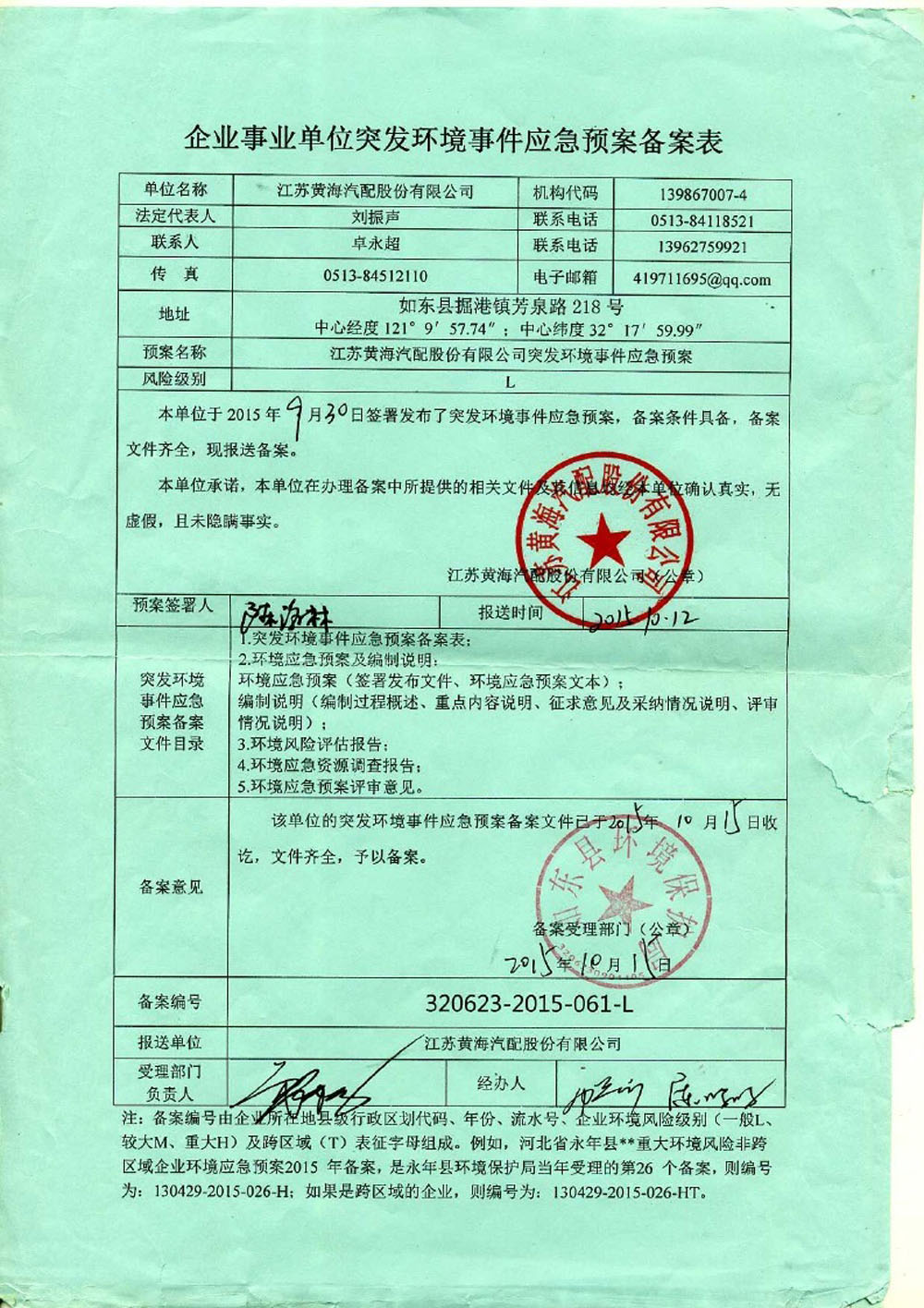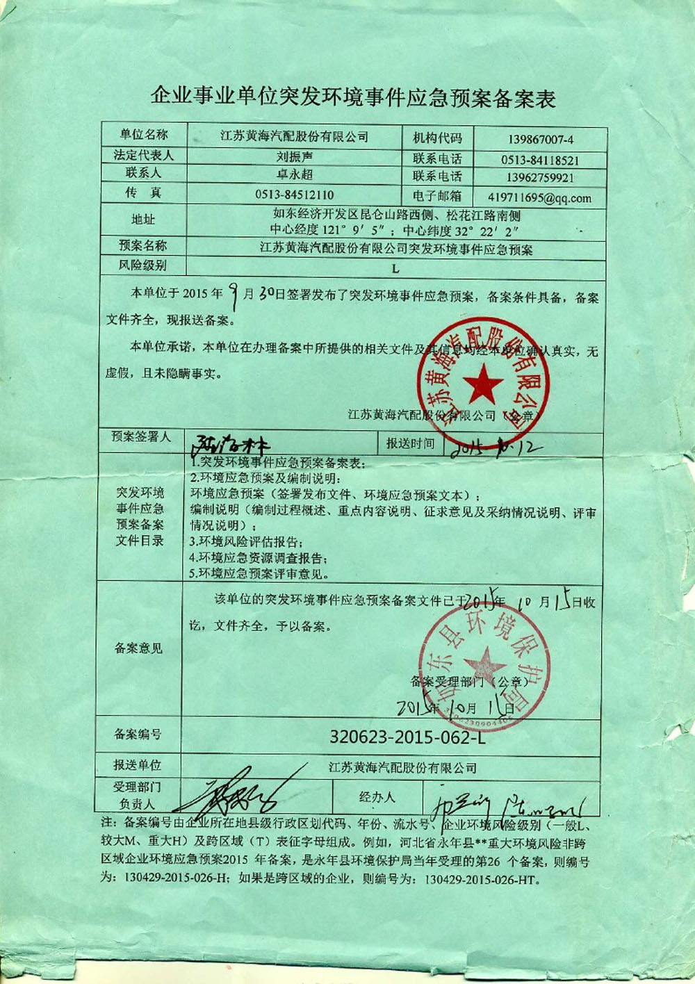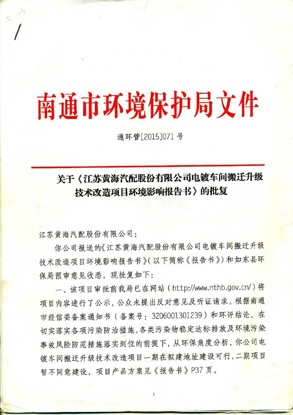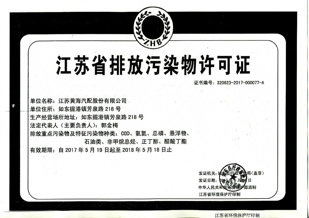 2017年南通市重點(diǎn)監(jiān)控(排污)單位公示信息-江蘇黃海汽配股份有限公司